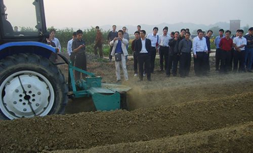 大型旋耕起壟機(jī)是由拖拉機(jī)動(dòng)力輸出軸驅(qū)動(dòng)的耕作機(jī)具,它是利用刀軸上刀片的旋轉(zhuǎn)和前進(jìn)的復(fù)合運(yùn)動(dòng),對(duì)未耕地或已犁耕地的田地進(jìn)行碎土作業(yè),其性能特點(diǎn)是碎土能力強(qiáng),一次旋耕達(dá)到一般犁耙?guī)状蔚男Ч<饶苓m用農(nóng)田的旱耕或水耕,也能用于鹽堿地淺層耕作覆蓋,以抑制鹽份上升、滅茬除草、翻壓覆蓋綠肥、蔬菜田整地等作業(yè),已成為水、旱地機(jī)械化整地的主要配套農(nóng)機(jī)具。配上形壟器可用于起大壟作業(yè),用于起大壟形經(jīng)濟(jì)作物的栽培,成型好,是旱煙地的主要農(nóng)機(jī)具。
